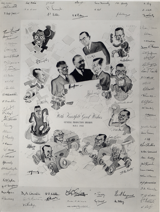 [Image credit: Sketch of Edwin Embleton and colleagues at the General Production Division, Ministry of Information, 1941(LHCMA: Embleton collection) https://kingscollections.org/exhibitions/archives/the-cartoon-in-wartime-propaganda/background/1939-1945 ]