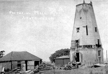 The windmill was auctioned by Watsons in May 1907 but by 1913 it was no longer working and the structure had become dangerous. Mr Sands, a local builder, was employed to dismantle it. “